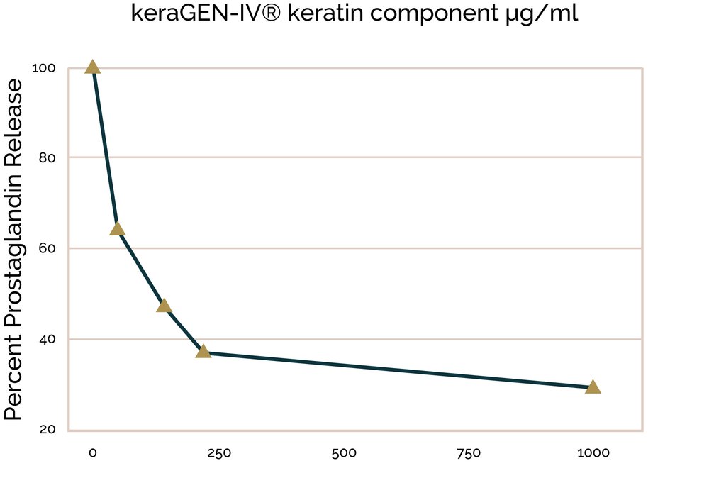 keraGEN-IV® contains a form of keratin that reduces the IL-1 stimulated production of PGE2, demonstrating a very significant anti-inflammatory effect.